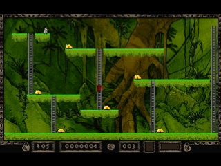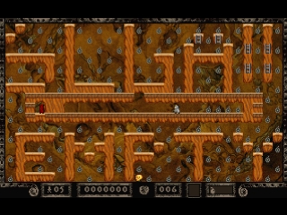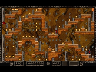 As you guide Jake around the underworld, grabbing all the gold so you can progress to the next level, a subterranean cult of gold worshippers will follow you around and make your task difficult. You can dig holes to momentarily trap these Mad Monks, but you should be careful not to trap yourself or touch a monk. As you go from level to level, the gold will be harder and harder to gather as you are basically forced to figure out puzzles that will enable you to dig your way to, fall on, or otherwise come in contact with the gold.