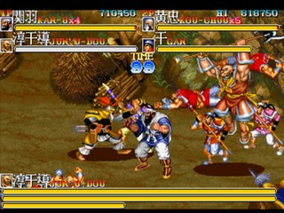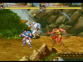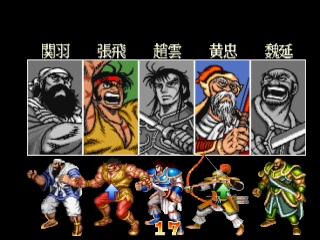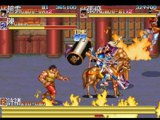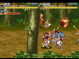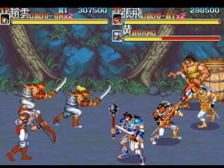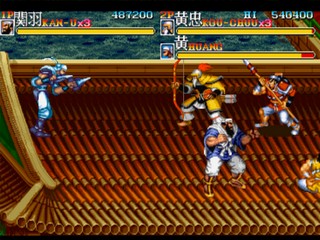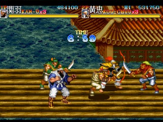 Tenchi wo Kurau II, which uses the manga Tenchi wo Kurau (based on the Romance of the Three Kingdoms story) as the background, and also the sequel of Dynasty Wars (Tenchi wo Kurau in Japan). It was released by Capcom in 1992, an era in which they also published several similar horizontal-scrolling action games such as Final Fight, Captain Commando, King of Dragons, and Knights of the Round.