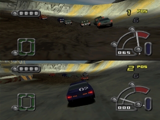 Though not a product of Psygnosis, Destruction Derby Raw retains the same emphasis on wanton vehicular destruction as its forebears. "Wreckin' Racing," "Battle," "Smash 4 $," are the three main modes of play, each offering additional sub-modes. Wreckin' Racing provides some sense of more traditional racing, in that the goal is to finish each track in one of the top three positions in order to advance through a championship circuit, unlocking courses (31 in all) all the while. Knocking the opposition around is not entirely discouraged either.