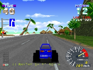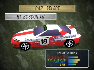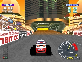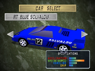 Ridge Racer Revolution is an enhanced remake of Namco's drift-heavy arcade hit, Ridge Racer. Select one of four initially available vehicles, each rated in top speed, acceleration, handling, and grip, before challenging 11 computer-controlled drivers on a choice of three courses.