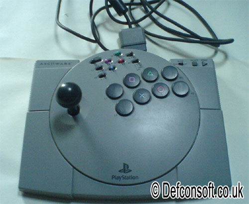 ![]() The Arcade Stick copies the layout and quality of components typically found in arcade game machines. It is compatible with the original PlayStation control pad protocol therefore it can be used with many Playstation 1 and 2 games. Namco PlayStation games like the Tekken series or Soul Edge/Blade were also labelled as compatible with the peripheral.