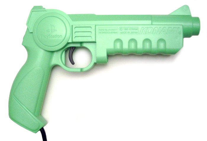 The first Guncon (G-Con 45 in Europe) (Sony ID: SLEH-00007) was bundled with the PlayStation conversion of Time Crisis. ![]()
