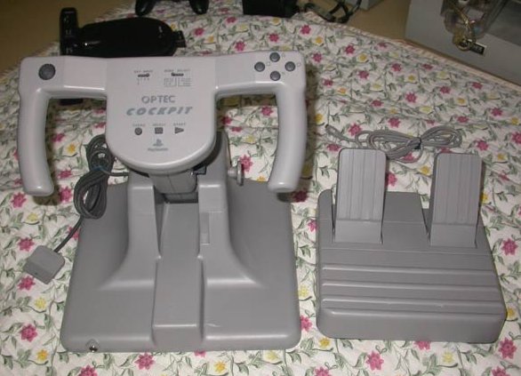 The Analog Joystick uses potentiometer technology previously introduced on consoles such as the Vectrex; instead of relying on binary eight-way switches, the controller can detect minute angular changes through the entire range of motion. The stick also features a thumb-operated digital hat switch on the right joystick, corresponding to the traditional D-pad, and used for instances when simple digital movements were necessary. A compatibility mode for the Analog Joystick was included in the Dual Analog Controller, Sony's first analog revision of its original gamepad design. This controller is used in games like Ace Combat, Bogey Dead 6, Armored Trooper Votoms and a few others. ![]()
