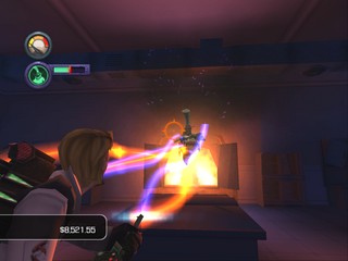 Since the game is all about hunting down and capturing ghosts, the perspective is set behind your character's shoulder to offer a clear view of the rooms and spectral anomalies ahead. The third-person viewpoint also displays one of the most important tools you'll have in confronting the ghosts: the Proton Pack. You must monitor the Proton Pack's power consumption to avoid overheating the device, and the backpack's flashing display also indicates health and weapon charge. Your character will be in constant radio communication with other members of the Ghostbusters team, including Peter Venkman, Raymond Stantz, Egon Spengler, and Winston Zeddmore, each voiced by the movie's original actors.