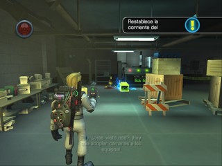 While the storyline and core play mechanics are the same across platforms, the Wii and PlayStation 2 games share a simplified, cartoon-like art style and an emphasis on multiplayer action. The first notable difference is cooperative support throughout the campaign via split-screen display, with the Wii version offering four-player action and the PlayStation 2 game offering two. Competitive modes include two playable sides: Ghostbusters or ghosts. As a ghost, you can fly or phase through specific areas in a room. You can also "scare" rivals by sneaking up behind them, leaving your victims more susceptible to attacks. As one of the Ghostbusters, you can use proton packs, ghost traps, and character-specific special techniques.