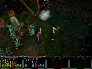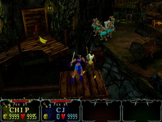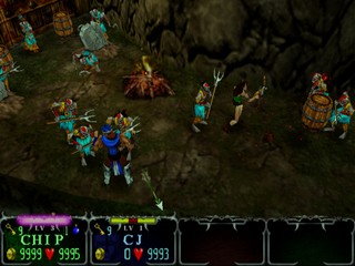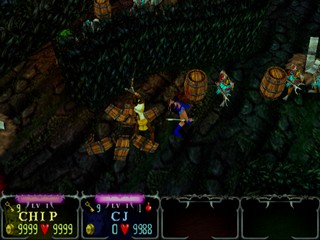 Eight characters are initially selectable -- with others hidden in the game ranging from the sublime to the ridiculous. A knight, sorceress, dwarf, and jester are just a small cross-section of the different classes, with each possessing a unique power to aid them in their quest. The special powers' effectiveness increases as your Turbo meter fills, and slowly regenerates over time. Aiding your slaughter of the swarms of evildoers is a plethora of items: explosive magic vials, multiple projectile attacks, and limited invulnerability are just a few of the many items that can be found or purchased. Unlike the original arcade titles, Gauntlet: Dark Legacy has a finite end, one which players will uncover after traversing the game's 60 stages.