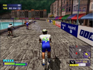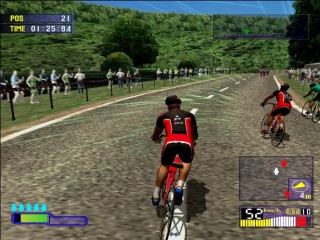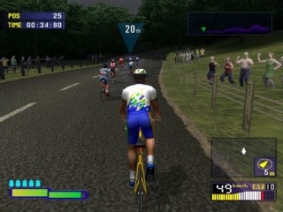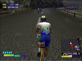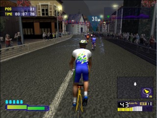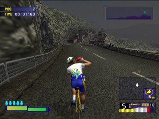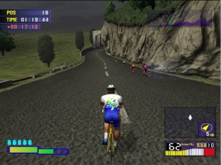 The games biggest evolution and stand out point from the rest comes from its Stamina bar. Once in the race there are 3 ways to pedal. The first is to hold down X that lets you pedal along leisurely, the second is repeated press X to stand up and pedal fast, which in turn depletes your stamina, and the third is to not press anything and not pedal ideal from gaining stamina on downhill sections. Push too hard and your stamina will run out and you’ll retire from the race. The ways to get back your stamina are to ride in the slipstream of other riders, which is a task in itself, or to take one of your five drinks your allowed per race.