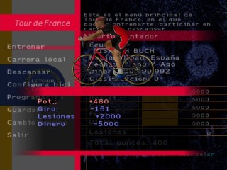 The game features 5 different game modes: Arcade. where the player competes freely on any of available tracks, Tour de France, where the player aims to win the prestigious competition in five years, by training and winning enough money to afford better bike parts and training sessions, Time Trial (racing against the clock) and train basic skills.