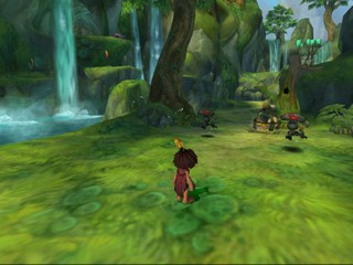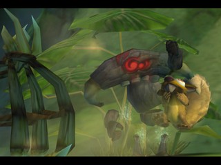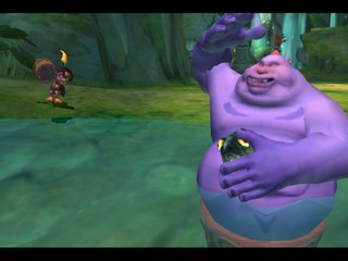 Tak 2 is fairly different from Tak and the Power of Juju. While it is still a 3D platform game, it is more focused on puzzles and combat as opposed to collecting items. In earlier stages, Tak must use animals to his advantage as he makes his way through levels - for example, a bear can be used as a trampoline, Tak can ride warthogs after being sprayed by skunks to mask his scent, and more. Jibolba is along for the ride, but has transformed into a flea for easy transport. As a result, you can throw him at enemies to bite them and make them sleepy.