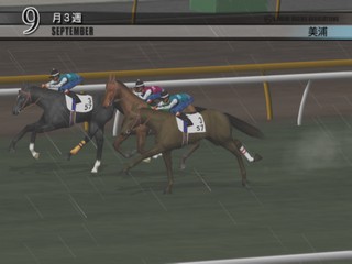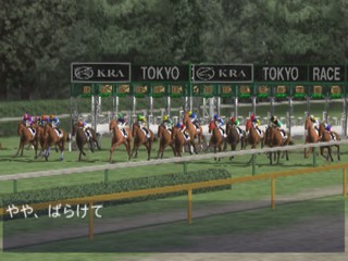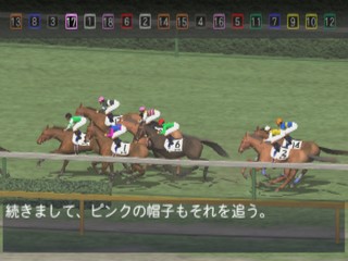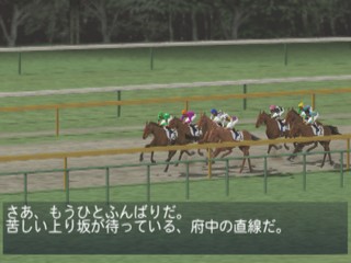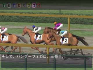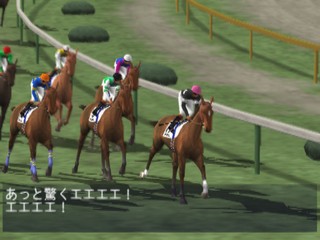 In Jikkyou G1 Stable 2 you're a horse whisperer. You train horses to make your living. In order to succeed, you'll need to maintain good relationships with the people in the stable and work together in a concerted bid to win a horse race. Famous Japanese jockeys, actual race horses and racing announcer Sugimoto Kiyoshi provide a measure of realism to the equine antics. Beautifully modeled horse races look like they're broadcast quality and ready for prime time television.