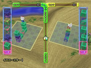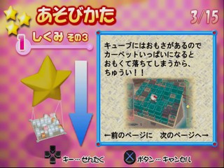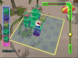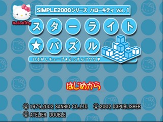 Simple 2000 Hello Kitty Vol.1 - Starlight Puzzle is a Hello Kitty themese puzzle game similar to Devil Dice. Though only in presentation, the exploding action elements of Devil Dice or Bombastic are not present here. Available only in Japan. Hello Kitty and friends stack and arrange blocks in an isometrically viewed 7x7 grid.