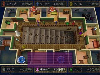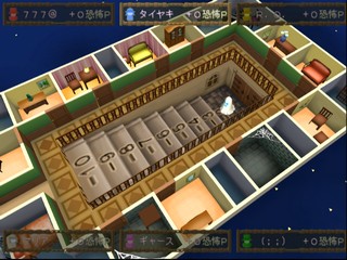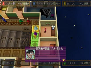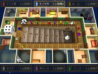 Once Hugo has reached the gallery, the guests can start ducking into rooms adjoining the gallery to avoid him, with only one guest per room! A couple of rooms are special in that they add or subtract extra "fright points" from your score. As Hugo catches up with the remaining guests, they are sequestered on the stair steps, then in the cellar. The first guest caught "earns" the most fright points, with those caught later in the round earning less and less.