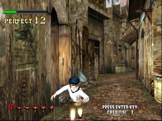 The Typing of the Dead is a modification of Sega's 1998 light gun arcade game The House of the Dead 2 in which the gun is replaced by a computer keyboard. The player takes the role of a secret agent in a zombie-infested Venice and must quickly type letters, words and phrases in order to kill fast-advancing enemies.