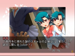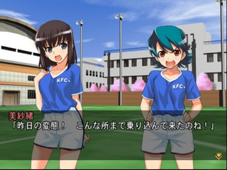 Koenji Onago Soccer is an adventure game that tells the story of ShigeruKo, a soccer player in his younger years that arrives at a ladies school (called Koenji Joshi) as the new physical education teacher when he will have to train a group of girls to become a soccer team. The game features a lot of different endings depending of the player choices during the game, the same for the team members, there are some members that will be avaliable if the player choose a route in the game and make the proper choices that will make the possible member to join the team.