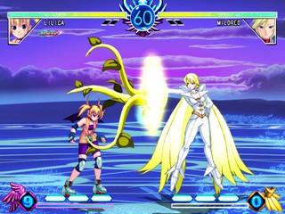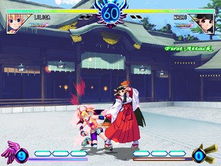 The game includes standard story, arcade, and versus modes, along with a training mode and an unlockable illustration gallery. Players can choose between the original version of the characters or the rebalanced versions from the arcade update Arcana Heart FULL!