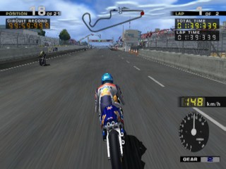 Based on the on the 1999 coin-op Namco 500cc GP, Moto GP brings motorcycle racing to the PS2, complete with single race, multiplayer, time trial and season modes. Race 125, 250 and 500cc bikes on a variety of real-life international courses in France, Germany, Japan and other countries around the world. And even though it's based on an arcade game, realism hasn't been forgotten, as realistic breaking and turning maneuvers are necessary for success.