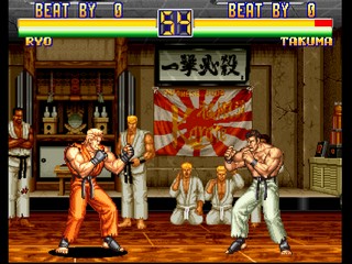 The plot of Art of Fighting alludes to Fatal Fury. Art of Fighting 2, for instance, documents the rise of Geese Howard, a character in Fatal Fury, from corrupt police commissioner to crime lord of Southtown. Takuma is said to be a contemporary of Jeff Bogard, adopted father of Fatal Fury's main heroes, Terry and Andy Bogard; Jeff Bogard's murder at the hands of Geese Howard triggers the events of the Fatal Fury series.
